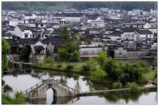 宏村位于黃山的西南麓、黟縣縣城西南11公里處,原是古代黟縣赴京通商的必經(jīng)之處。整個(gè)村落占地約28公頃,其中被界定為古村落范圍的面積有19.11公頃。宏村是徽州傳統(tǒng)地域文化、建筑技術(shù)、景觀設(shè)計(jì)的杰出代表,具有極高的歷史、藝術(shù)、科學(xué)價(jià)值,是徽州傳統(tǒng)建筑文化的真實(shí)見(jiàn)證。宏村已被聯(lián)合國(guó)教科文組織列入了《世界文化遺產(chǎn)名錄》。