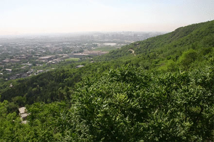 西出京城,舉目眺望,就會(huì)看見(jiàn)小西山南端有三座突兀的山峰。南為虎頭山,北為青龍山,中間的是翠微山,三山形如三角,呈鼎足之勢(shì)。三山又像一把圈椅,翠微山(464米)為靠背,青龍山(438米)、虎頭山(387米)為左右扶手。