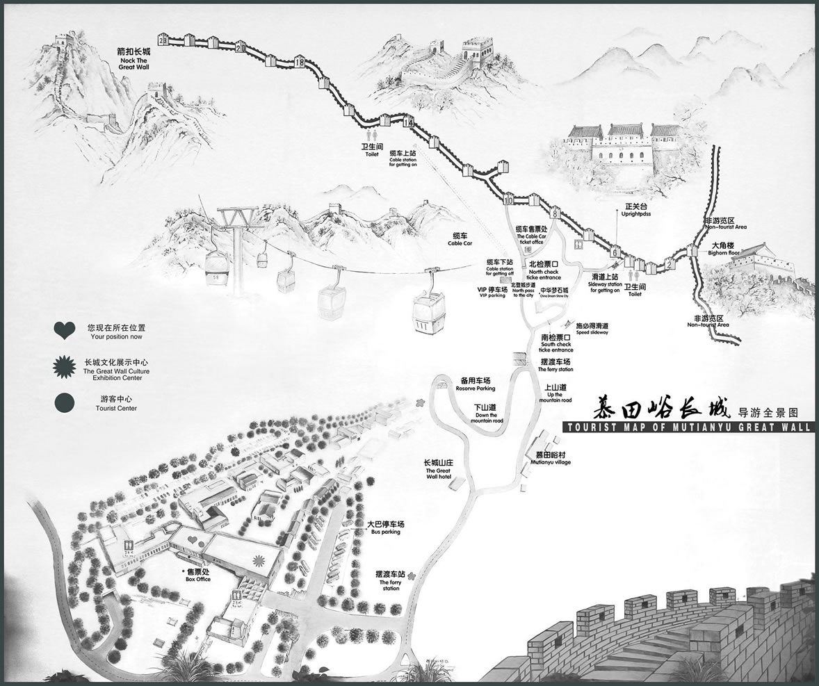 (四)長城擁有雙面垛口——其他段長城,多為長城外側(cè)一面建垛口墻,而慕田峪段長城卻兩面都為垛口墻,垛口墻即守城將士對敵作戰(zhàn)的掩體。兩面垛口墻,即意味著兩側(cè)同敵作戰(zhàn),可見慕田峪段長城在歷史上的重要戰(zhàn)略地位。