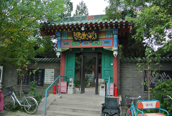 張家灣清真寺 張家灣清真寺,位于張家灣鎮(zhèn)西街。中軸線上主體建筑禮拜殿,勾連搭四卷,硬山簡瓦,規(guī)模較大。一三兩卷為箍頭脊,二卷為調(diào)大脊,大吻壯觀,小獸玲瓏。第四卷明間為窯殿,四角攢尖,綠琉璃寶頂高聳天空,次間則為卷棚頂,別具一格。博古彩畫精美,西頭磚雕別致,嵌山方圓木窗活潑,井口天花鮮艷整潔,南北配殿與禮拜殿之間有海棠柱曲廊相連。結(jié)構(gòu)嚴(yán)謹(jǐn),錯落有致。 |