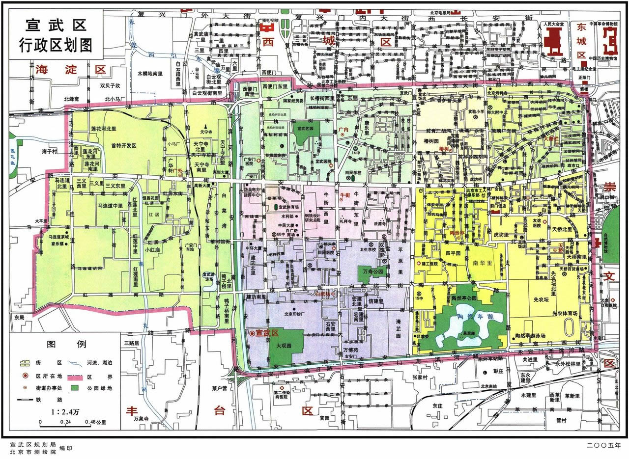 2005年,宣武區(qū)轄8個街道:白紙坊街道、大柵欄街道、椿樹街道、廣內街道、廣外街道、牛街街道、陶然亭街道、天橋街道。共有108個社區(qū)。