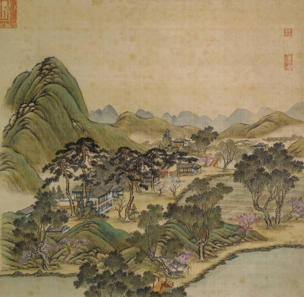 該景建筑在雍正年間還有些農(nóng)家味道,到乾隆年已是面貌全非。這里有大殿五間前后抱廈的軒(春雨軒),有重檐四方亭的杏花春館,有齋,有土地祠,甚至還有城關(guān)。其造園意境完全按乾隆想象中的山莊景色成造。杏花春館的疊山藝術(shù)很高,與廓然大公、獅子林的堆山有同等的藝術(shù)價值。其東北是山石加土山,以土山為主,山中有山道和城關(guān)。其中部圍繞著主要建筑的山峰為太湖石堆疊。與坦坦蕩蕩交界處為青石堆疊且有山洞及山亭裝點。。
