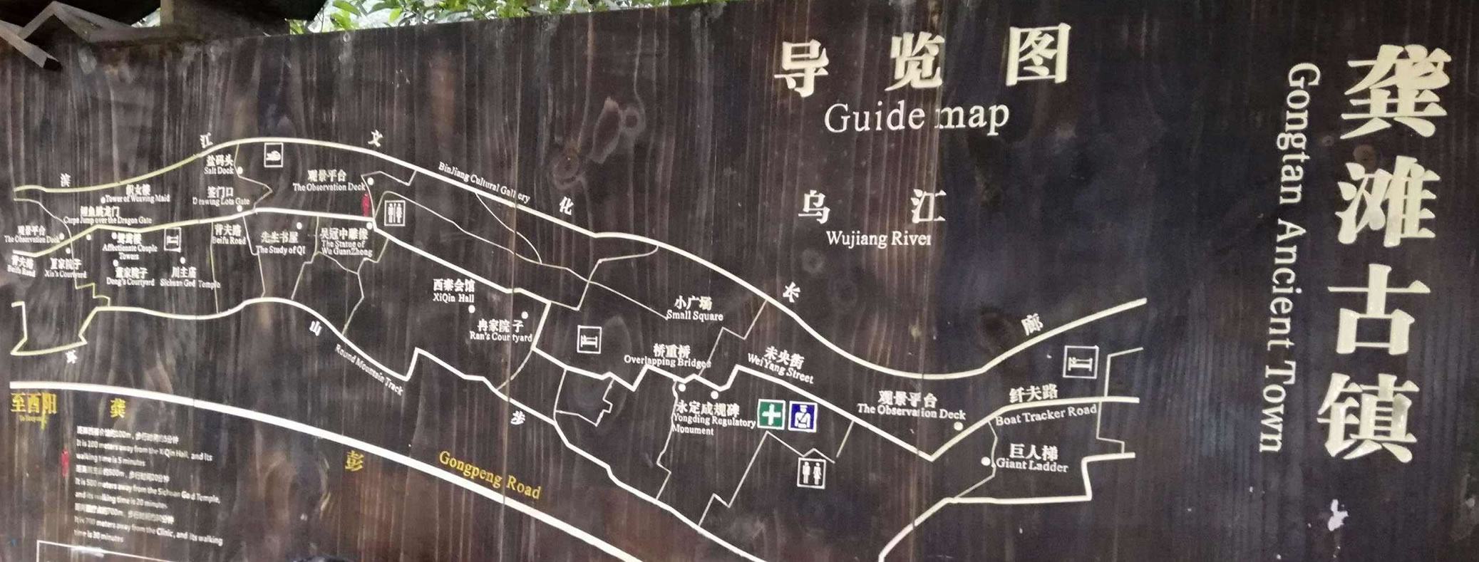 龔灘古鎮(zhèn)源自蜀漢,建置于唐,距今1800年的歷史。古鎮(zhèn)街道歷代修葺,至2005年總長(zhǎng)約3千米,皆以石板街、吊腳樓、坡屋面、小青瓦為風(fēng)貌特征。其中老街長(zhǎng)1.5千米,存寺廟、祠堂、古碼頭、古纖道、古梯道、古橋梁、古牌坊、古樹、古井、古碑石等。青石板街將古鎮(zhèn)按照不同的歷史背景、民族文化以商業(yè)業(yè)態(tài)形式布局為五段,以榨油、織布為特色的“油坊路”,以背夫腳夫文化為主題的“背夫路”,以西秦會(huì)館為代表建筑的“西秦路”,展示纖夫文化的“纖夫路”,以鹽商鹽號(hào)為特色的“老鹽路”。有50余堵別具一格的封火墻、200多個(gè)古樸幽靜的四合院、50多座形態(tài)各異的吊腳樓,獨(dú)具地方特色,是中國(guó)國(guó)內(nèi)保存完好且頗具規(guī)模的明清建筑群。