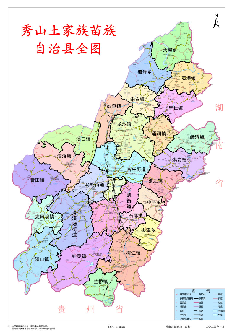 秀山土家族苗族自治縣轄5個(gè)街道、18個(gè)鎮(zhèn)、4個(gè)鄉(xiāng):