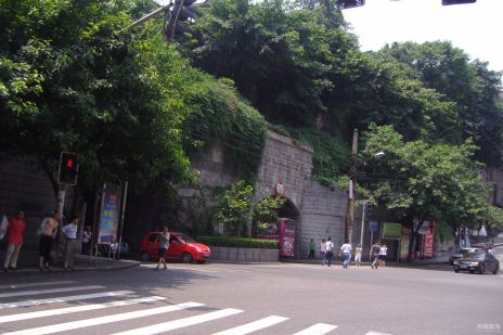 通遠門建于明洪武初年,位于重慶老城的正西方,甕門東北向,正門橫書“克壯千秋”四字;其甕城門上書“通遠門”三字,因通遠門是古代重慶通往四川其它地區(qū)等地的起點,故名之曰“通遠”。