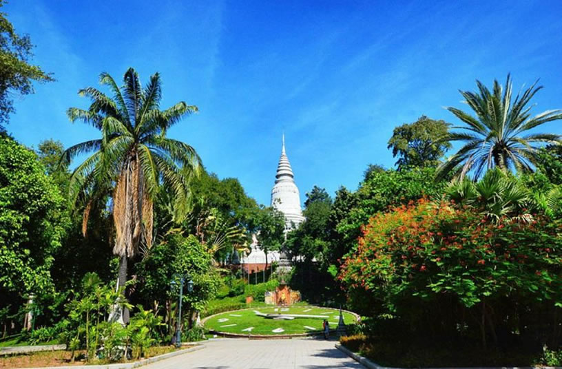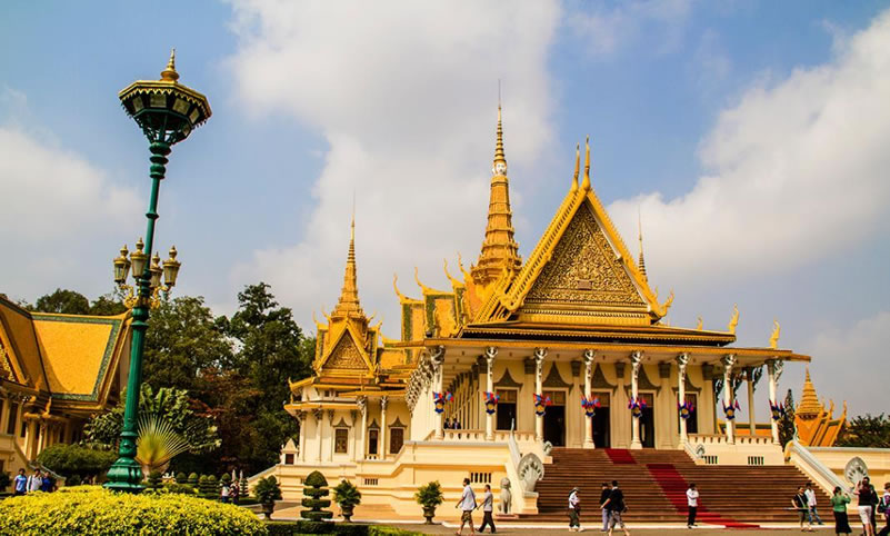 金邊王宮 金邊王宮(RoyalPalace)也稱四臂灣大王宮,因位于上湄公河、洞里薩河、下湄公河與巴薩河的交匯處而得名,是諾羅敦國王于1866—1870年建造的。王宮為長方形,長435米,寬402米,外有城墻。王宮的建筑具有高棉傳統(tǒng)建筑風格和宗教色彩,宮殿均有尖塔,代表繁榮;殿身涂以黃、白兩色,黃色代表佛教,白色代表婆羅門教。王宮最初為木結(jié)構(gòu),后改建為水泥結(jié)構(gòu),但保持了原來的風貌。王宮內(nèi)主要建筑有:銀閣、金鑾殿、波佳尼閣、凱瑪靈宮、月光樓。