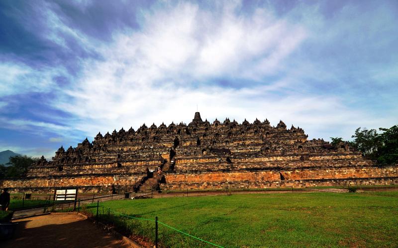 婆羅浮屠寺廟群 婆羅浮屠位于東南亞的印度尼西亞,大約建于公元750年至850年間,由當(dāng)時統(tǒng)治爪哇島的夏連特拉王朝統(tǒng)治者興建。“婆羅浮屠”這個名字的意思很可能來自梵語"Vihara Buddha Ur",意思就是“山頂?shù)姆鹚?rdquo;。婆羅浮屠大約建于九世紀(jì),公元1006年因火山噴發(fā)而被埋入地下。直到806年后的1812年被英國人萊佛士發(fā)現(xiàn),婆羅浮屠得以重見天日。與中國的長城、印度的泰姬陵、柬埔寨的吳哥窟并稱為古代東方四大奇跡。 婆羅浮屠是作為一整座大佛塔建造的,從上往下看它就像佛教金剛乘中的一座曼荼羅,同時代表著佛教的大千世界和心靈深處。整個建筑分為三層,基座是五個同心方臺,呈角錐體;中間是三個環(huán)形平臺,呈圓錐體;頂端是佛塔。四周圍墻和欄桿飾以淺浮雕,總面積2500平方米;圍繞著環(huán)形平臺有72座透雕細(xì)工的印度塔,內(nèi)有佛龕,每個佛龕供奉一尊佛像。婆羅浮屠寺廟群在聯(lián)合國的援助下于1970年得以重建,現(xiàn)已經(jīng)成為印度尼西亞最著名的景點之一。