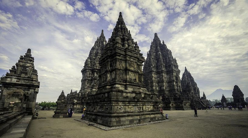 巴蘭班南 巴蘭班南(Prambanan)位于日惹市郊,被譽為爪哇最美麗的印度教寺廟古跡,亦是印度尼西亞最大最美的印度教寺廟,是記錄印度尼西亞人祖先燦爛文化的載體,與臨近的婆羅浮屠一起被列入聯(lián)合國世界文化遺產(chǎn)。 巴蘭班南寺廟群由240座廟宇組成,大部分已經(jīng)淪為一堆瓦礫,但一些主要的廟宇在經(jīng)歷了天災(zāi)人禍的滄桑變遷后,在人們的努力下得以重建,又煥發(fā)出昔日的風(fēng)采。 巴蘭班南寺廟共有8個圣殿,其中三個主殿分別祭祀著濕婆、毗濕奴和羅摩這三位印度教中的主神。中心院落里有三個主殿。濕婆殿高為46.5米,里面是濕婆的妻子杜爾加的神像,也是最高的神殿。濕婆殿的北側(cè)是維斯奴廟,南側(cè)是婆羅吸摩廟,前面是楠迪廟。在毗濕奴和婆羅吸摩廟的前面是瓦哈諾廟,阿皮特廟位于北側(cè),其南側(cè)與廟宇相接。在主廣場每一個大門前面的東西兩側(cè)有四個克利爾廟;而在主廣場的四個角上均各有一個小廟宇。