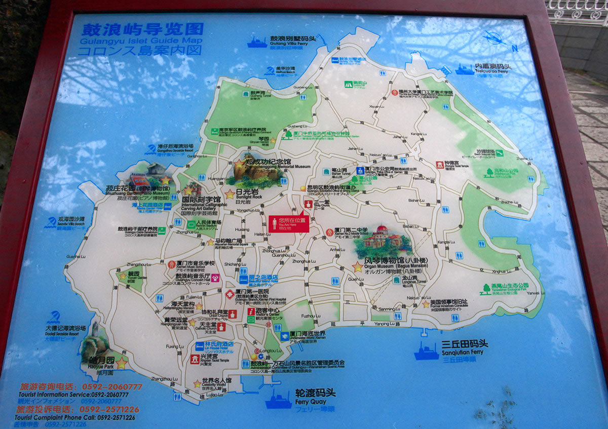 路線2:輪渡碼頭一三丘田碼頭一沙灘球場、工藝美術(shù)學院一鼓浪別墅一菽莊花園一輪渡碼頭。