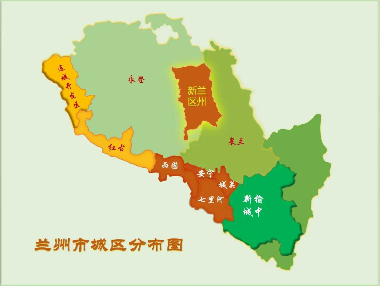 蘭州市轄5個(gè)區(qū)、3個(gè)縣: