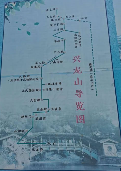 唐宋時(shí),興隆山神殿甚多,香火旺盛,稱(chēng)“洞天福地”。清代時(shí),這里廟宇樓閣,或依山面壁,或深藏密林,畫(huà)棟雕梁,飛檐紅柱,甚為壯觀。后大多被毀,僅存清代所建飛跨興隆峽的云龍橋(臥橋)一座。清康熙年間取復(fù)興之意,改名“興隆山”。本世紀(jì)五十年代,全山亭臺(tái)樓閣以及廟宇達(dá)70多處,景點(diǎn)24處,成為佛、道勝地。