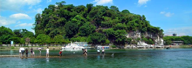 訾洲公園位于漓江東岸的訾洲上,與象鼻山隔江相望,公園總面積51.26公頃,因唐代洲上曾有訾姓人家居住而得名。洲呈梭形如舟浮如水中,沿江群山,簇?fù)磉b列,東望七星山、東南望穿山、西北可觀疊彩山、伏波山、獨(dú)秀峰,南望象鼻山,斗雞山。訾洲風(fēng)景歷史悠久,從唐元和十二年(817年),即有桂州刺史兼桂管觀察使裴行立在洲上興土木、建樓閣,開桂林山水國(guó)林之先河。公園2011年建成,開發(fā)建設(shè)楓葉留丹,碑亭流芳、詩(shī)畫汗青等人文景觀,成為集生態(tài)、文化、旅游、休閑于一體的綜合性公園。