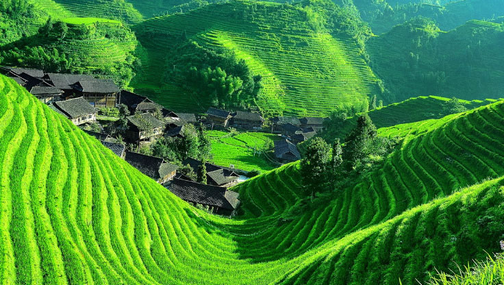 龍脊梯田,因山脈如龍的背脊而得名,是廣西著名風(fēng)景區(qū),始建于元朝,有近700年的歷史。龍脊梯田景區(qū)主要分為平安壯寨梯田和金坑紅瑤梯田。平安壯寨梯田有“七星伴月”和“九龍五虎”兩大著名景觀;金坑紅瑤梯田有“大界千層天梯”,“西山韶樂(lè)”和“金佛頂”三大著名景觀。這里的壯、瑤民族世世代代居住在青瓦木樓之中,淳樸善良。金竹壯寨被聯(lián)合國(guó)教科文組織稱為北壯的楷模;黃洛紅瑤寨獲上海大世界吉尼斯集體長(zhǎng)發(fā)村之最;龍脊古壯寨至今保留著許多文物古跡。
