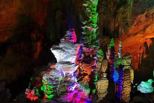 鴛鴦洞,位于縣城東面,鳳凰山腰,海拔700余米,為云貴高原南緣巖溶中高位雙層溶洞,洞中石柱、石筍、石幔琳瑯滿目。洞口高7.5m,寬12m。洞長480米,最寬處320米,巖廳最高點52米,面積為2.5萬平方米,洞內大廳規(guī)模宏大。從洞口進入便是第一層洞,游程迂回全長1200米,洞中乳石崢嶸,石筍高達36.4m,象擎天巨柱直插天空,20m以上高度的石筍約15個,6m左右高度的石筍更是不計其數(shù),在多處聚集形成了奇特的洞中石林景觀。洞內最大的石幔高約15m,寬6m,顏色潔白,酷似瀑布。