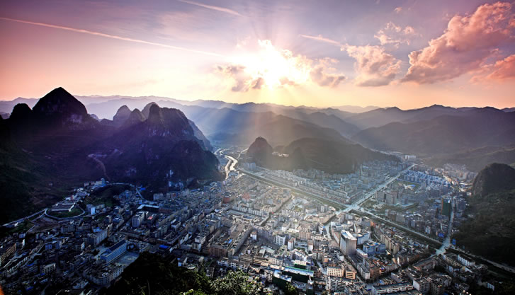 鳳山縣,隸屬于廣西壯族自治區(qū)河池市,地處云貴高原南部邊緣地帶,地勢由西北向東南傾斜,山多地少,典型的喀斯特巖溶地貌,自然旅游資源異常豐富,70%面積為大石山區(qū),30%面積為土山區(qū),耕地面積101726畝。屬亞熱帶季風氣候區(qū),雨量充沛,光照充足,溫和濕潤,年平均氣溫20.1℃,全年降雨量1564.0毫米,無霜期362天。鳳山縣常住人口為169845人。總面積1729平方千米。