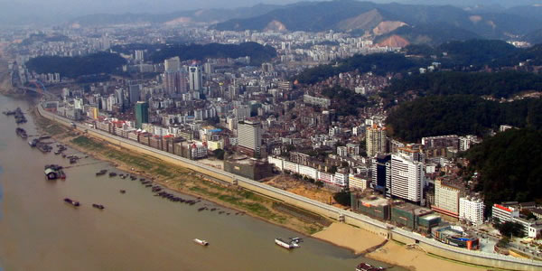 梧州市位于珠江流域西江水系中下游—潯江(西江上游)與桂江交匯處。西江水系梧州市以上流域,集水面積32.97萬平方千米。流域上游西面為云貴高原,北面有大苗山、貓兒山、越城嶺,南面是十萬大山、六萬大山、大容山等。西江水系匯集江河溪流700多條和廣西壯族自治區(qū)85%以上水量流經(jīng)梧州市。整個流域西北高,東南低,流域內(nèi)水流匯集西江注入珠江,流域內(nèi)河流密度較大,廣西壯族自治區(qū)境內(nèi)集水面積50平方千米以上河流784條,平均河流密度為每平方千米0.14千米。全市流域面積大于10平方千米河流有420條。其中,流域面積10平方千米~50平方千米河流有283條;流域面積50平方千米~100平方千米河流有65條;流域面積100平方千米~1000平方千米河流有55條;流域面積1000平方千米~1萬平方千米河流有13條;流域面積大于1萬平方千米河流有4條。中間低而多河流,潯江、桂江相匯成西江,集廣西壯族自治區(qū)眾多河流水量,河流水面積占總面積9.28%。梧州市流域面積大于10平方千米河流有7條,其中100平方千米~1000平方千米河流有1條。黔江在桂平市三角咀郁江匯入處以下河段稱潯江,流經(jīng)桂平市和平南縣、藤縣、蒼梧縣,至梧州市區(qū)桂江匯入處止。干流長172千米,蒼梧縣及梧州市區(qū)境內(nèi)18千米,河段平均坡降0.0097%。區(qū)間流域面積20236平方千米。其中,廣東省境內(nèi)1594平方千米,在廣西壯族自治區(qū)境內(nèi)18642平方千米。
