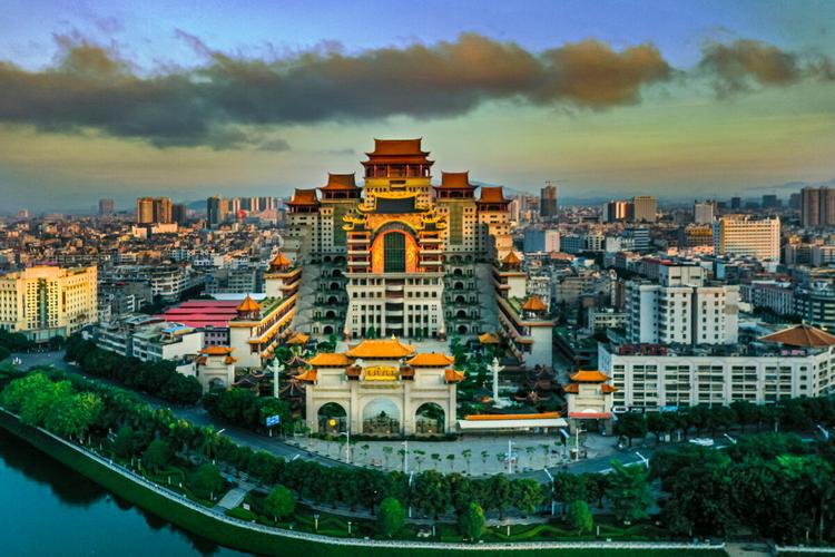 云天文化城又稱云天宮,位于玉林市江濱路,南流江畔。是一座以濃縮中國(guó)古今傳統(tǒng)文化和著名建筑風(fēng)格為一體的巨型仿古宮殿式建筑。占地面積為14萬(wàn)平方米,主體建筑高21層共108米。云天文化城以石雕、木雕、鑄銅三大系列藝術(shù)性的呈現(xiàn)中華名族的歷史文化,以創(chuàng)新的手法為中國(guó)上下五千年的文化做傳承。點(diǎn)睛之作是六樓閣樓高30米,重達(dá)600噸用1千多片銅片組成的硫金鑄銅工藝品“皆大歡喜”。