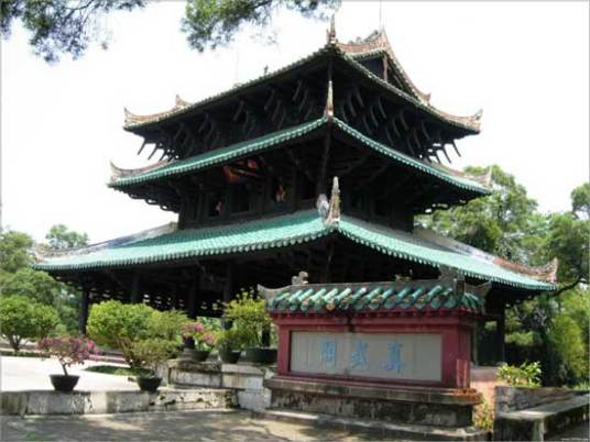 經(jīng)略臺(tái)真武閣,中國(guó)道教宮觀建筑,用于奉祀真武帝以鎮(zhèn)火災(zāi)。其結(jié)構(gòu)采用三層檐、歇山頂、穿斗式構(gòu)架,通高13.2米,面寬13.8米,進(jìn)深11.2米,總面積168平方米。其采用穿斗式構(gòu)架方式,把近3000根大小不一的格木構(gòu)件鑿榫卯眼,斜穿直套,串聯(lián)嵌合,彼此扶持,互相制約,不用一釘一鉚,也沒(méi)有一個(gè)鐵構(gòu)件,以“杠桿結(jié)構(gòu)”原理組成一個(gè)穩(wěn)固的統(tǒng)一體。
