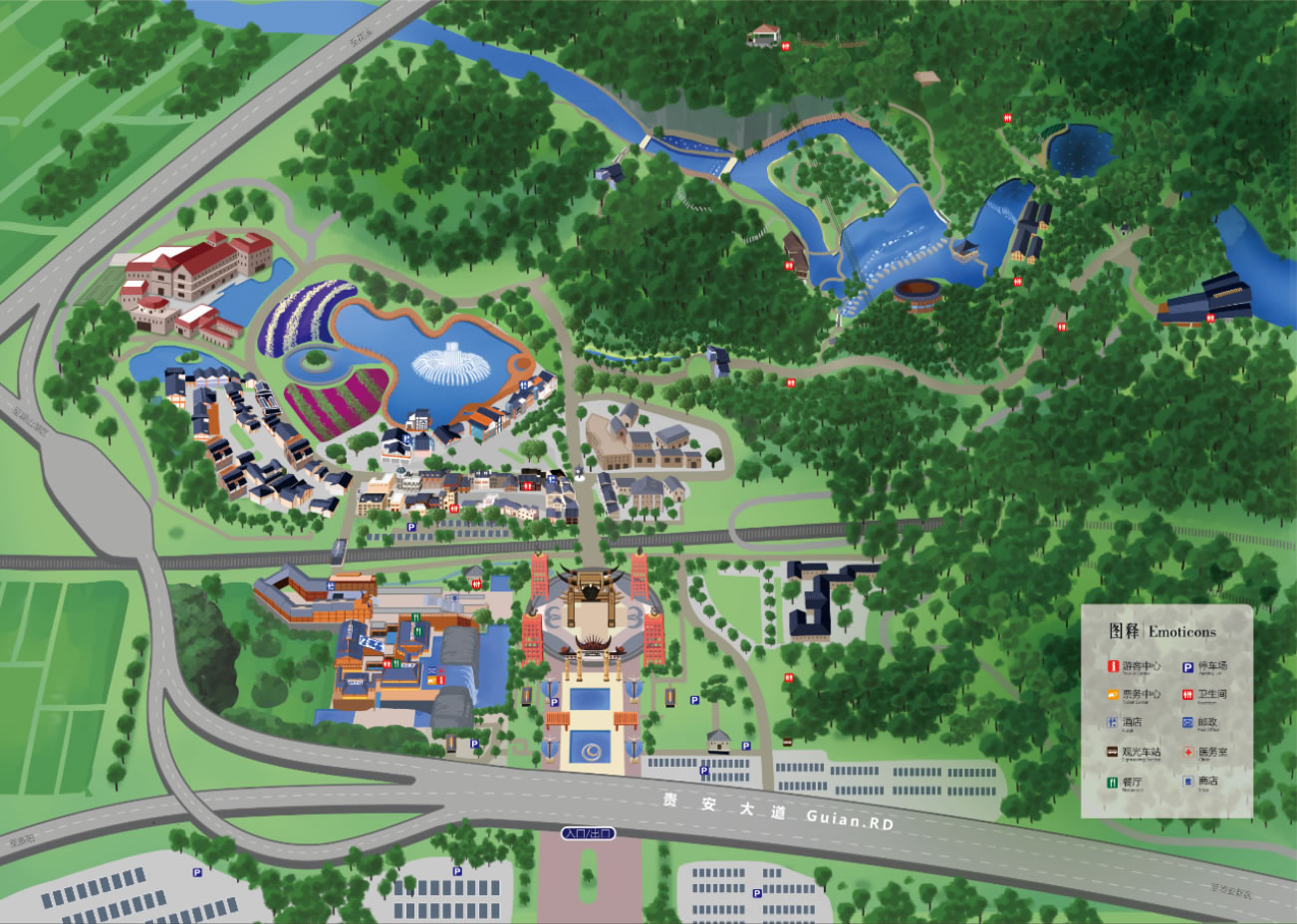 經(jīng)過升級改造后,天河潭現(xiàn)增游客服務(wù)中心、太陽廣場、貴陽故事街、濱水休閑區(qū)、五色花海、戶外婚慶草坪等區(qū)域,并配套文化娛樂、餐飲購物、休閑度假、商務(wù)會議、民俗體驗、戶外婚禮等多元化服務(wù)。