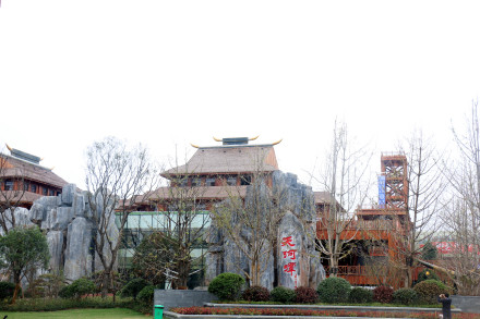 游客服務(wù)中心,占地面積3萬平方米,同樣以民族元素為特色建造。它臨近主出入口和停車場,是游客到達天河潭第一站。