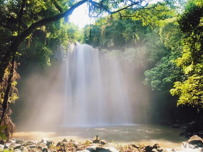 臨高古銀瀑布位于海南臨高縣皇桐鎮(zhèn)居仁村西部附近,距縣城以東20公里。史稱(chēng)“古銀瀑布”,這一個(gè)大潭,有“三潭九曲”之美稱(chēng)。瀑布系平川落差而致,落差20米,幅面20米,幅寬400平方米;周?chē)质至,形狀各異,千姿百態(tài)。后面樹(shù)木茂密,宛如碧海,屹立在怪石上,枝繁葉茂,覆蓋如亭。錯(cuò)節(jié)盤(pán)根,透出倔強(qiáng)的生命力。處處花香鳥(niǎo)語(yǔ)不斷