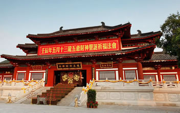龍五爺財(cái)神殿位于三亞南山龍脈財(cái)穴之地,供奉著南海龍王第五子——圣衍,即“天下第一財(cái)神”——龍五爺。龍五爺財(cái)神殿由三個(gè)部分組成:一是招財(cái)大殿,開示信眾招財(cái)進(jìn)寶;二是地宮財(cái)庫,護(hù)佑信眾守財(cái),護(hù)財(cái);三是。五爺萬佛閣,護(hù)佑信眾福祿傳世,富貴傳家。龍五爺財(cái)神招財(cái)大殿,開示信眾如何求財(cái)?shù)姆ㄩT。在龍五爺財(cái)神殿的大殿之上,有八根財(cái)柱,分別代表了龍五爺開示眾生如何正當(dāng)求財(cái)?shù)陌舜蠓ㄩT,只有依五爺開示,樹立了正確的八大財(cái)富觀,才能求財(cái)如意。