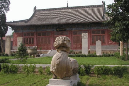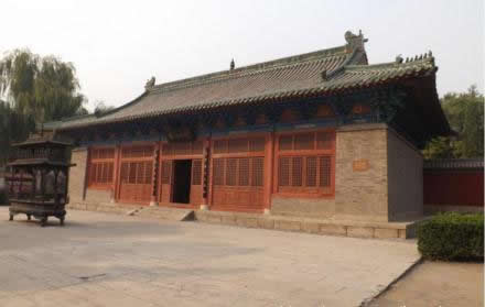 扁鵲廟群形制的特點:四周群山環(huán)繞,諸殿坐落其中,廟前河水涓涓,地勢逐漸加高,依山隨勢建筑,軸線對稱分布,景致獨具特色。
