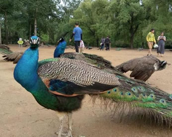 世界瀕危野生動(dòng)物綠孔雀在秦皇島野生動(dòng)物園不斷繁衍生息,已從1949年的20余只繁育到80只,成為中國最大的綠孔雀群。綠孔雀俗名:孔雀、越鳥、爪哇綠孔雀;體型最大的雉科鳥類,體重7000-8000克。雄鳥全長約140厘米,雌鳥約100厘米。雄鳥體羽翠藍(lán)綠色,下背閃紫銅色光澤。頭頂有一簇直立的羽冠。尾上覆羽延伸成尾屏,可達(dá)1米以上,約有百余枚,并有紫、黃、藍(lán)、綠多種顏色構(gòu)成的眼狀斑紋,形成孔雀特有的尾屏。開屏?xí)r顯得異常艷麗、光彩奪目。雄鳥尾特長,頭部冠羽豎起,頸、上背及胸部具綠色光澤,尾上覆羽特長并具閃亮眼斑而成尾屏。雌鳥羽色以褐色為主,帶綠色輝光。無尾屏。
