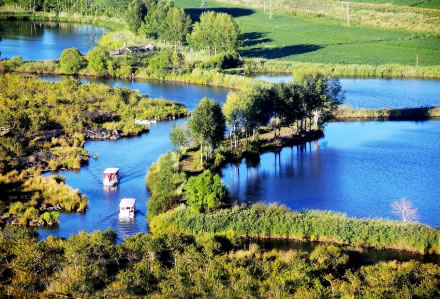 鶴鳴湖坐落在葦塘中間,背靠世界奇觀噴氣錐碟,面對古老石塘的湖泊,水深3-5米。它的水面以葦塘觀鶴和環(huán)境幽靜聞名,有二條寬50米的水生植物帶,香蒲、蘆葦、菱角等挺水植物十分茂密。水底是火山砂,池中魚類豐富,盛產(chǎn)鯽魚,有興趣的游客可以在船上垂釣。四池湖岸水草叢生,野生水鳥白鶴、丹頂鶴常常雙棲雙飛筑巢產(chǎn)卵,是不可多得的夏季野營區(qū)。當游人靜靜的坐在對面湖畔古石塘之上,聞著濃濃的草香,聽著遠近仙鶴的鳴叫,一定會深深愛上這個火山世外桃源、美麗的鶴家鄉(xiāng)。