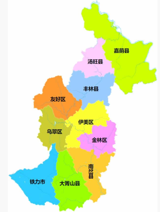 伊春市轄4個市轄區(qū)、5個縣,代管1個縣級市: