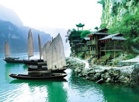 三峽人家依山傍水,風(fēng)情如畫:傳統(tǒng)的三峽吊腳樓點(diǎn)綴于山水之間,久違的古帆船、烏篷船安靜地泊在三峽人家門前,溪邊少女揮著棒槌在清洗衣服,江面上悠然的漁家在撒網(wǎng)打魚……千百年來流傳不衰的各種習(xí)俗風(fēng)情體現(xiàn)著峽江人民的質(zhì)樸好客。