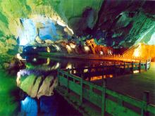 奇梁洞位于鳳凰古城以北的奇梁橋鄉(xiāng),吉鳳公路左側,屬于典型的碳酸鹽巖洞。奇梁洞集山、河、峽谷、險灘、絕壁、飛瀑、叢林、田園、村落于一體,洞內(nèi)有“古戰(zhàn)場”“畫廊”“天堂”“龍宮”“陰陽河”五大景區(qū)。于是有“奇、秀、幽、峻”四大特色,更有“奇梁歸來不看洞”之說。洞口高50余米,寬20多米,一條清溪穿溶洞而過,水流平緩。巖洞用五光十色的霓虹燈打在石筍、石幔及石花上。洞長有十二余里路,走完全洞,得要三個多小時。奇梁洞不僅景色迷人,還有著獨特的歷史底蘊,后來還成為湖南衛(wèi)視《玫瑰之約》現(xiàn)場拍攝之地。