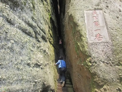被稱為崀山第一絕的天下第一巷,全長238.8米,兩側(cè)石壁高80—120余米,最寬處0.8米,最窄處0.33米,可謂世界一線天絕景。
