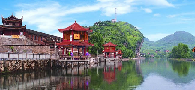 邵陽市歷史上的“寶慶十二景”,多點(diǎn)綴于資江兩岸,環(huán)布市區(qū)。由雙清公園、水府廟小游園和東塔公園連綴而成的城區(qū)風(fēng)景區(qū),兼有人工之美和自然之秀。水府廟前,雙江匯流;資江南北,兩塔并峙;江流蜿轉(zhuǎn),四橋飛虹;近水遙山,綠意蔥籠。市郊附近的溶洞亦為奇觀。境內(nèi)辟有新寧崀山、城步南山、武岡云山、新邵白水洞等風(fēng)景區(qū),60多個(gè)旅游景點(diǎn)。全國道教七十二福地之一的武岡云山歷來香火鼎盛。有兩華聳翠、一瀑飛濤、仙橋橫漢、杏塢藏春等10景,野生動(dòng)植物品種繁多,被辟為國家森林公園。城步南山象一塊碧綠的翡翠鑲嵌在湘西南邊陲,芳草如茵,牛羊成群,既具北國草原的雄渾,又不失江南草山的靈秀,為回歸綠色旅游的最佳生態(tài)環(huán)境。新寧崀山系典型的丹霞地貌景觀,集奇峰、幽谷、碧水、丹崖于一體,方圓達(dá)100平方公里,紫霞洞曲徑通幽,駱駝峰高聳入云,牛鼻寨的“天下第一巷”鬼斧神工,堪稱“亞洲第一”的仙人橋渾然天成。登八角寨遠(yuǎn)眺,群峰幽谷,丹崖秀水,盡收眼底;泛舟扶夷水上,澄江如練蜿蜒于百里畫廊。全國著名經(jīng)濟(jì)學(xué)家厲以寧至此油然感慨:“一線天梯驚煞人,幽谷深處凈無塵;新寧別有奇峰在,不讓武陵獨(dú)占春!鄙坳柹酱ǖ乩,秀麗天成。崀山景區(qū),是天下風(fēng)光之勝;南山牧場,為江南草山明珠;黃桑森林王國,云山佛門圣地,綏寧神奇綠洲,龍山地下藏金。銀杉國寶,鐵杉群落,自然景觀,民族風(fēng)情。泛舟資江三峽,尋幽舜皇秀色,無不風(fēng)光奇絕,引人入勝。邵陽更是一方人文薈萃之區(qū)!耙鹿谕趸,耕鑿古風(fēng)同”。邵陽開化甚早,民風(fēng)淳厚,智慧勤勞,尚武崇文,文明綿遠(yuǎn),代有才人。唐代胡曾,工詩味史;車氏一家,才俊滿門;清代魏源,倡師夷制夷之說;民元蔡鍔,有護(hù)國倒袁之勛。比及民國,志士接踵。御外侮而謀解放,袁國平沙場獻(xiàn)身;求真理而競自由,尹如圭血寫春秋。他們都是邵陽人杰,千古風(fēng)流,民族精英。