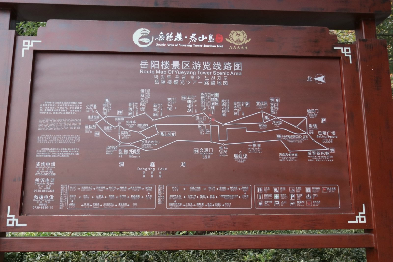 懷甫亭位于岳陽樓下臨湖平臺,占地40平方米,高7米,四周環(huán)以欄桿,上部為純木結(jié)構,亭中豎有石碑一方,正面刻著杜甫的畫像和《登岳陽樓》詩,背面刻有其生平事跡,北面檐下懸掛有樟木匾額,上書"懷甫亭"三個字,是岳陽人民紀念詩圣杜甫的地方。