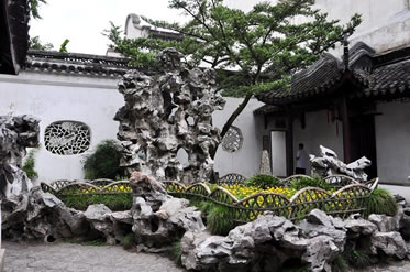 獅子林雖綴山不高,但洞壑盤(pán)旋,嵌空奇絕;雖鑿池不深,但回環(huán)曲折,層次深?yuàn)W,飛瀑流泉隱沒(méi)于花木扶疏之中。獅子林的古建筑大都保留了元代風(fēng)格,為元代園林代表作。園以疊石取勝,洞壑宛轉(zhuǎn),怪石林立,水池縈繞。依山傍水有指柏軒、真趣亭、問(wèn)梅閣、石舫、臥云室諸構(gòu)。主廳燕譽(yù)堂是典型的鴛鴦廳形式;指柏軒,南面面對(duì)假山,下面靠近小池,古柏蒼勁;見(jiàn)山樓上可以看到群峰;菏花廳雕鏤精工;五松園庭院幽雅;湖心亭、暗香疏影樓、扇亭等均各有特色。園內(nèi)四周長(zhǎng)廊縈繞,花墻漏窗變化繁復(fù),名家書(shū)法碑帖條石珍品700余方。
