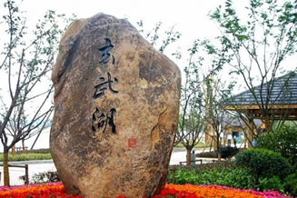 郭璞墩位于環(huán)洲西端。存石亭一座,仙墩置石一塊。是玄武湖地勢(shì)最高處。郭璞墩為東晉著名文學(xué)家、科學(xué)家郭璞的衣冠冢。郭璞景區(qū)建設(shè)以東晉時(shí)期為歷史背景,體現(xiàn)六朝風(fēng)格,沿軸線建設(shè)了郭璞雕像、不老門、等景觀,彰顯郭璞仙墩古樸隆重之氣。