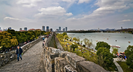 玄武湖環(huán)湖路全長(zhǎng)9.8公里,總面積56萬平方米,周圍分部著眾多的南京著名景點(diǎn),環(huán)湖路西南半邊為南京明城墻圍繞,城墻外便是繁華的都市,靜與鬧僅一墻之隔。北岸自西向東依次為神策門公園、南京火車站,東岸自北向南依次為南京國(guó)際展覽中心、情侶園、白馬公園,南岸自東向西依次為太平門、九華山公園、古閱武臺(tái)、南京武廟、雞鳴寺、解放門、臺(tái)城,西岸自南向北依次為玄圃、玄武門、杉林氧吧、萬三花園,其中西岸和南岸均有南京明城墻為依。