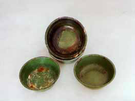 戰(zhàn)犯用的碗、碟:抗戰(zhàn)勝利后,一批侵華日軍及漢奸得到了應(yīng)有的下場(chǎng),在人民的正義審判下,他們也不得不承認(rèn)其犯罪事實(shí),這幾件瓷碗、碟都是當(dāng)年關(guān)押在遼寧撫順戰(zhàn)犯管理所的戰(zhàn)犯?jìng)兪褂眠^的碟碗。