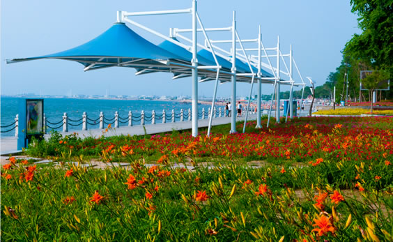 白沙灣黃金海岸(國(guó)家AAAA級(jí)風(fēng)景旅游區(qū))地處蓋州市歸州辦事處、九壟地辦事處西部,全長(zhǎng)14.7公里,距蓋州市區(qū)46公里,距高速公路(熊岳站出口)8公里,濱海公路貫穿園區(qū)。面臨渤海,以海域風(fēng)光為主,海岸蜿蜒,沙灘細(xì)軟,形如新月,景色壯麗。白沙灣是一個(gè)在綠樹(shù)掩映之下的海濱浴場(chǎng),人稱“東北第一灘”。