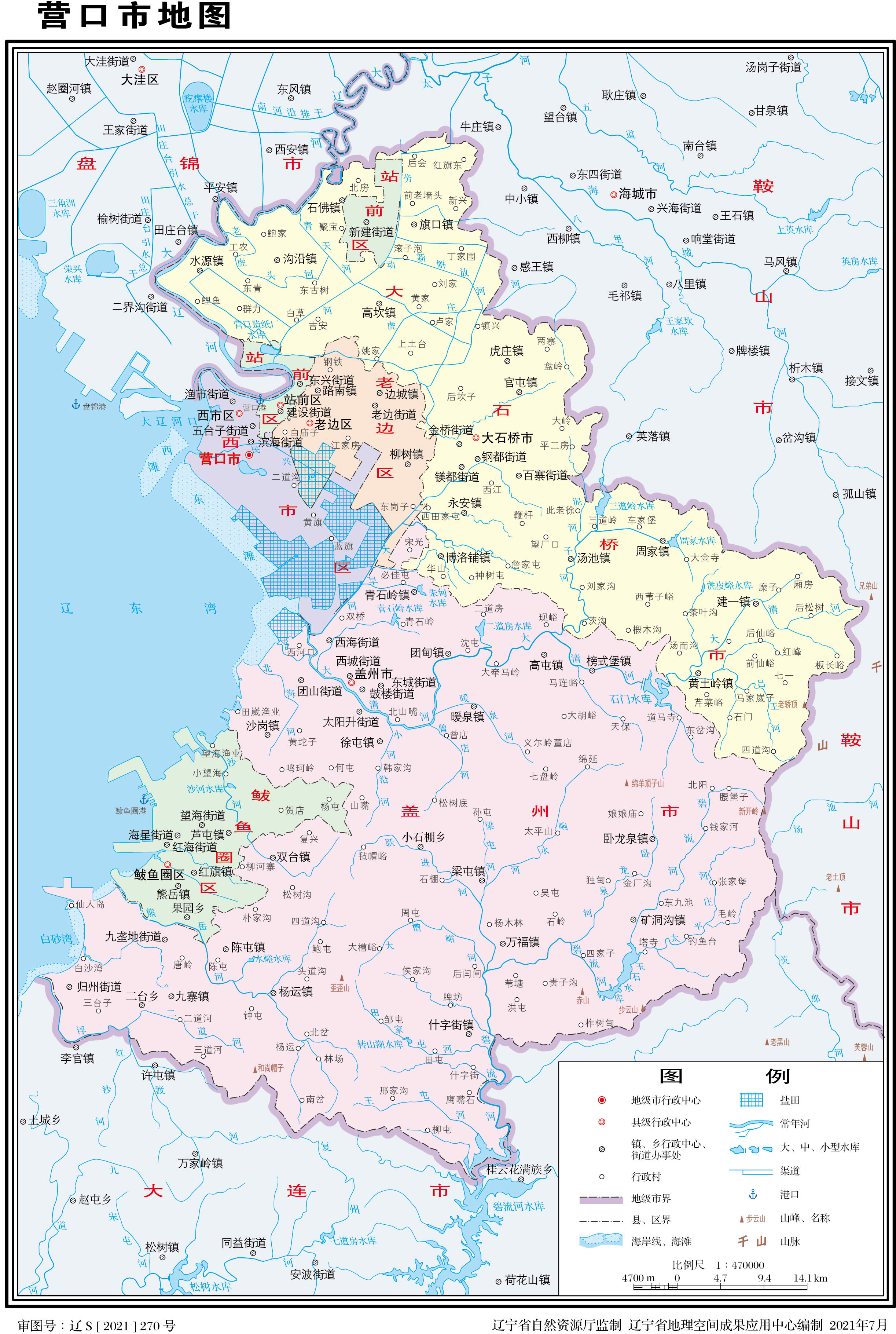 營(yíng)口市轄4個(gè)區(qū),代管2個(gè)縣級(jí)市: