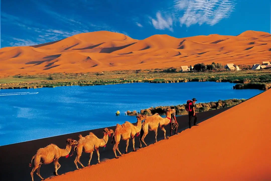面積約4.43萬(wàn)平方千米,是中國(guó)第三大沙漠。流動(dòng)沙丘占全部沙漠面積的83%。中部有高大沙山,一般高200-300m,最高的達(dá)500m。高大沙山間的低地有144個(gè)內(nèi)陸小湖。巴丹吉林沙漠有“中國(guó)最美的沙漠”的美稱。是阿拉善世界沙漠地質(zhì)公園的核心區(qū)域。