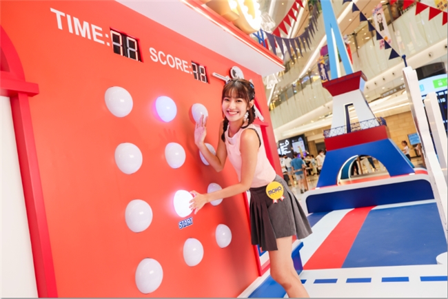 4.7米高的紅磨坊那極具標(biāo)志性的紅色配上璀璨金色亮燈MOKO字樣,非常的搶眼。紅磨坊前設(shè)置擊劍場,由“無敵劍神”及“世一劍后”坐陣,邀請游客參與這場反應(yīng)與速度的挑戰(zhàn),游戲限時30秒,隨著墻上拍拍燈隨機(jī)亮起,每按下一盞亮燈即可得分,讓游客在充滿歡樂的挑戰(zhàn)中,看看自己是否有成為新一代劍神劍后的實力。