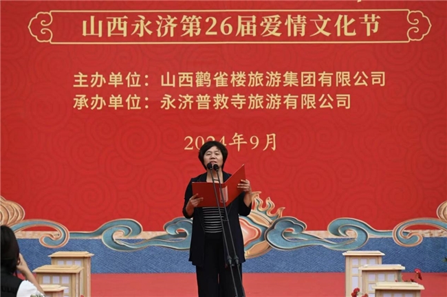 9月 21 日,普救寺迎來了第 26 屆愛情文化節(jié)的盛大開幕式。開場節(jié)目《蒲州花傘》瞬間將人們帶入了濃郁的地域風(fēng)情之中。隨后,主持人隆重介紹到場領(lǐng)導(dǎo)嘉賓。永濟(jì)市政府黨組成員崔子龍發(fā)表了誠摯而熱情的致辭,表達(dá)了對愛情文化節(jié)的美好祝愿和對永濟(jì)文化旅游事業(yè)的殷切期望。市委宣傳部部長李朝霞宣布開幕,正式拉開了本次愛情文化節(jié)的精彩帷幕。