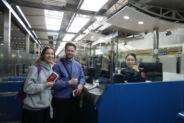 12月17日10時許,一對年輕的俄羅斯情侶搭乘HU7986航班落地北京首都國際機場二號航站樓,成功申請到240小時臨時入境許可,成為首都國際機場口岸率先享受過境免簽新政策的外國旅客之一。