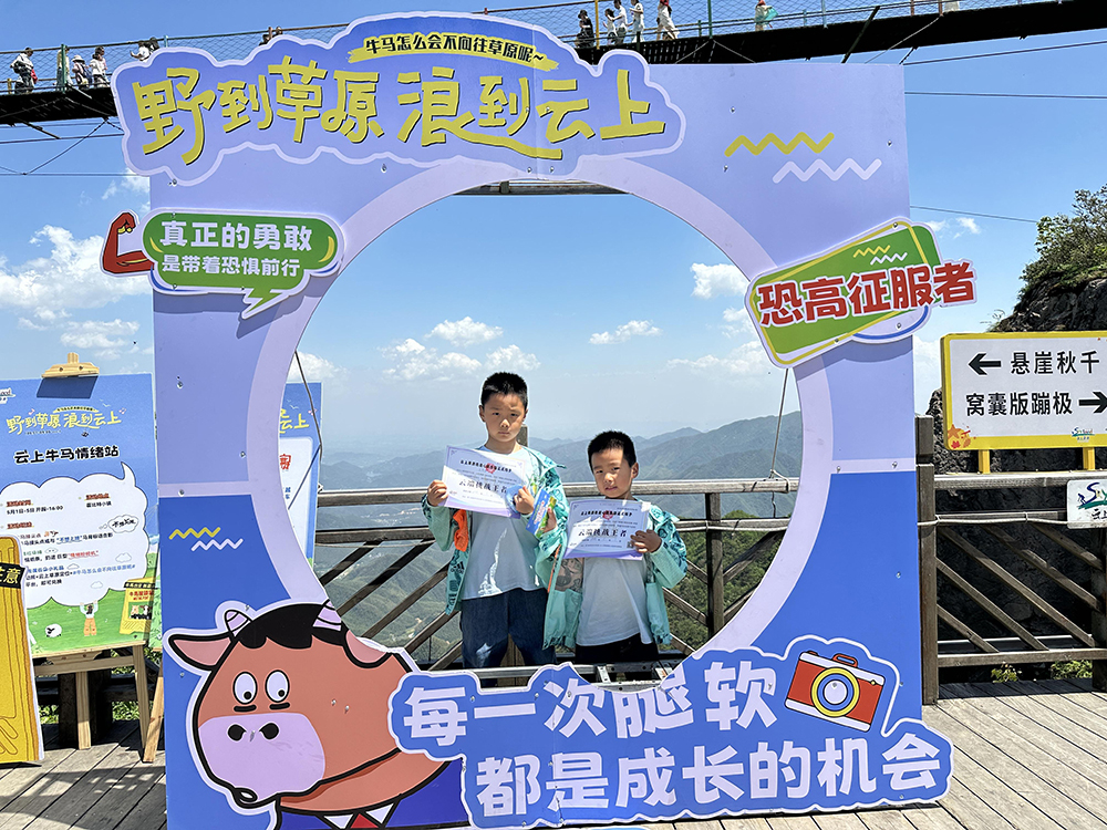 懸崖秋千、窩囊蹦極、飛拉達·懸崖穿越等六大極限項目挑戰(zhàn)賽正如火如荼進行中。不少游客在“步步驚心”高空索道上顫抖前行,卻仍高舉手機記錄驚險瞬間。完成挑戰(zhàn)者可現場領取“勇氣證書”。