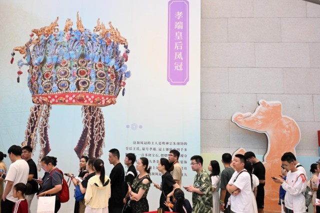 7月19日,觀眾在北京中國國家博物館排隊購買鳳冠冰箱貼。新華社記者 金良快 攝