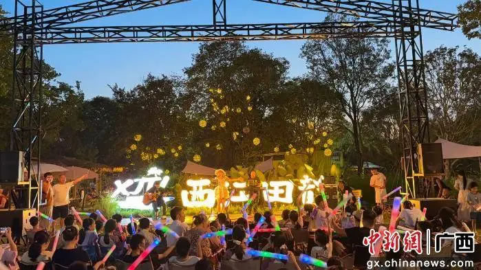 西江田韻休閑營(yíng)地的草坪音樂(lè)會(huì)人氣爆棚。每日傍晚,草坪上坐滿游客,主辦方邀請(qǐng)多風(fēng)格樂(lè)隊(duì)、歌手現(xiàn)場(chǎng)演出,動(dòng)感流行曲與舒緩民謠交替響起,旋律在田野間回蕩。游客或鋪野餐墊圍坐,或站在草坪邊緣揮舞熒光棒,隨節(jié)奏輕搖,享受獨(dú)特音樂(lè)盛宴。