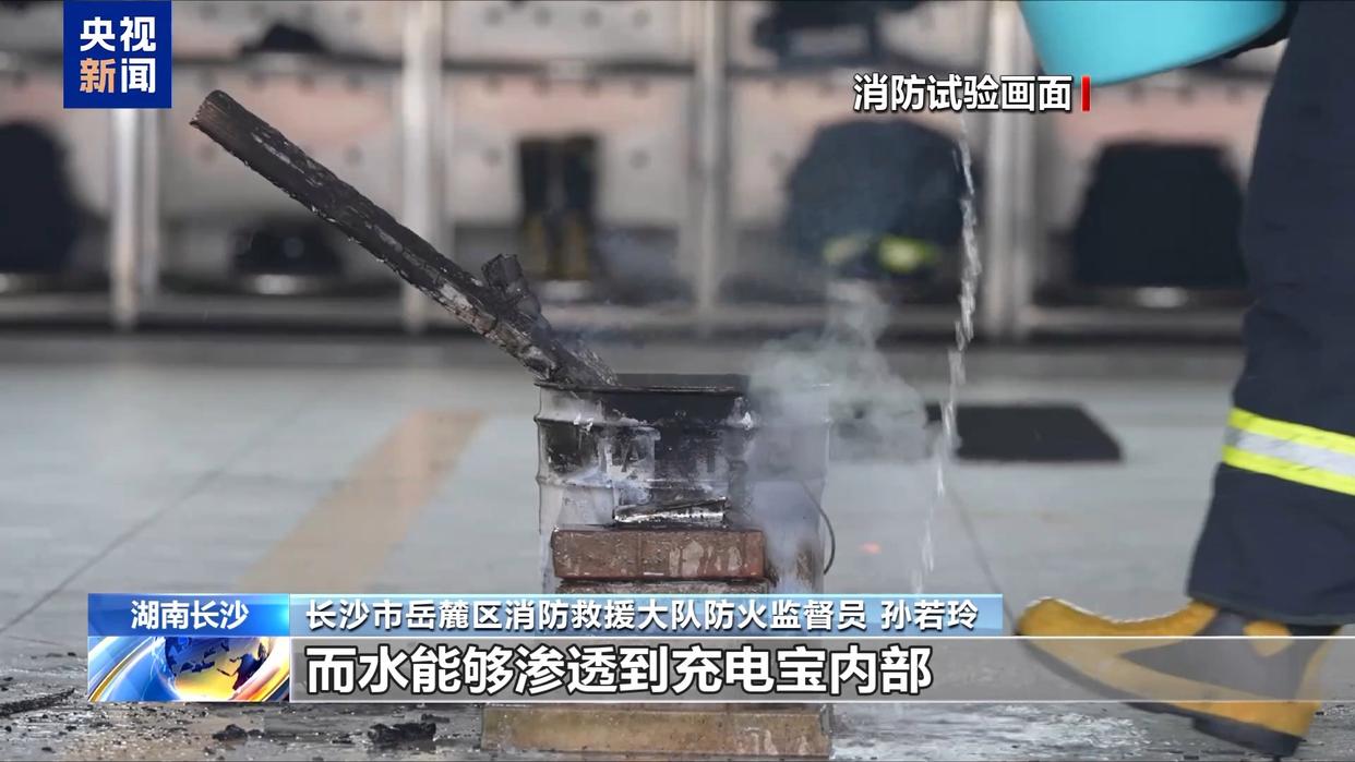 長沙市岳麓區(qū)消防救援大隊(duì)防火監(jiān)督員 孫若玲:干粉滅火器的滲透性和降溫效果比較差,在應(yīng)對充電寶著火時效果并不理想,而水能夠滲透到充電寶內(nèi)部,有效滅火并起到降溫作用。