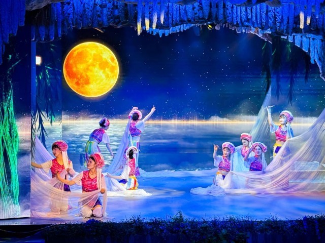 島上的龍宮溶洞是一處天然形成的水下溶洞,全長約1300米,可以說是全國僅存在水島上的溶洞。洞內(nèi)石柱、石筍、石幔等喀斯特地貌景觀發(fā)育完整。特別值得一提的是,洞內(nèi)設(shè)有水下劇場,每天上演反映白族漁家生活的歌舞表演,成為游客了解當?shù)匚幕闹匾翱凇?/p>
